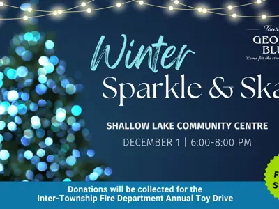Get ready to kick off the festive season with a Winter Sparkle & Skate event in the heart of Georgian Bluffs! On Friday, December 1st, from 6:00 pm to 8:30 pm, the Township of Georgian Bluffs is set to illuminate the village with holiday cheer at the Shallow Lake Community Centre.